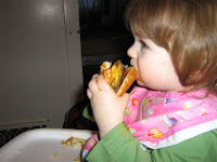 Lately Kaitlyn has has been changing her tastes when it comes to food. For a while she never wanted to have any beef.....it was all about chicken. Then one night we got McDonald's and like always we bought her chicken nuggets and all she wanted was Daddy's cheeseburger. She also had to feed herself.